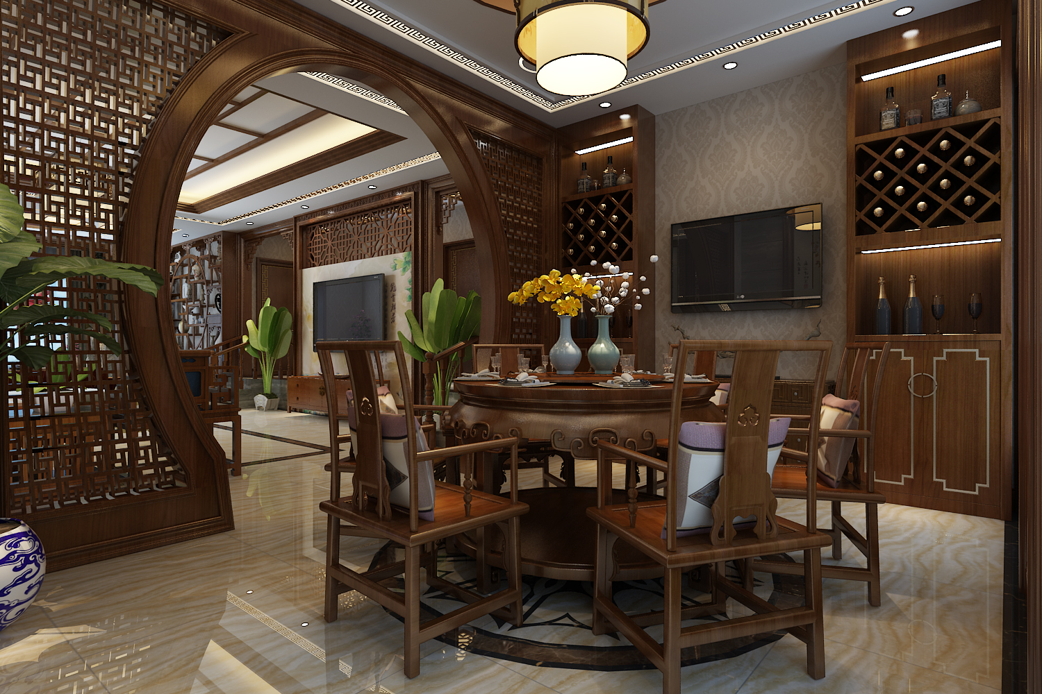 中式風(fēng)格追求的是一種修身養(yǎng)性的生活境界,中國傳統(tǒng)室內(nèi)裝飾藝術(shù)的特點(diǎn)是總體布局對稱均衡,端正穩(wěn)健,而在裝飾細(xì)節(jié)上崇尚自然情趣,花鳥、魚蟲等精雕細(xì)琢,富于變化,充分體現(xiàn)出中國傳統(tǒng)美學(xué)精神。